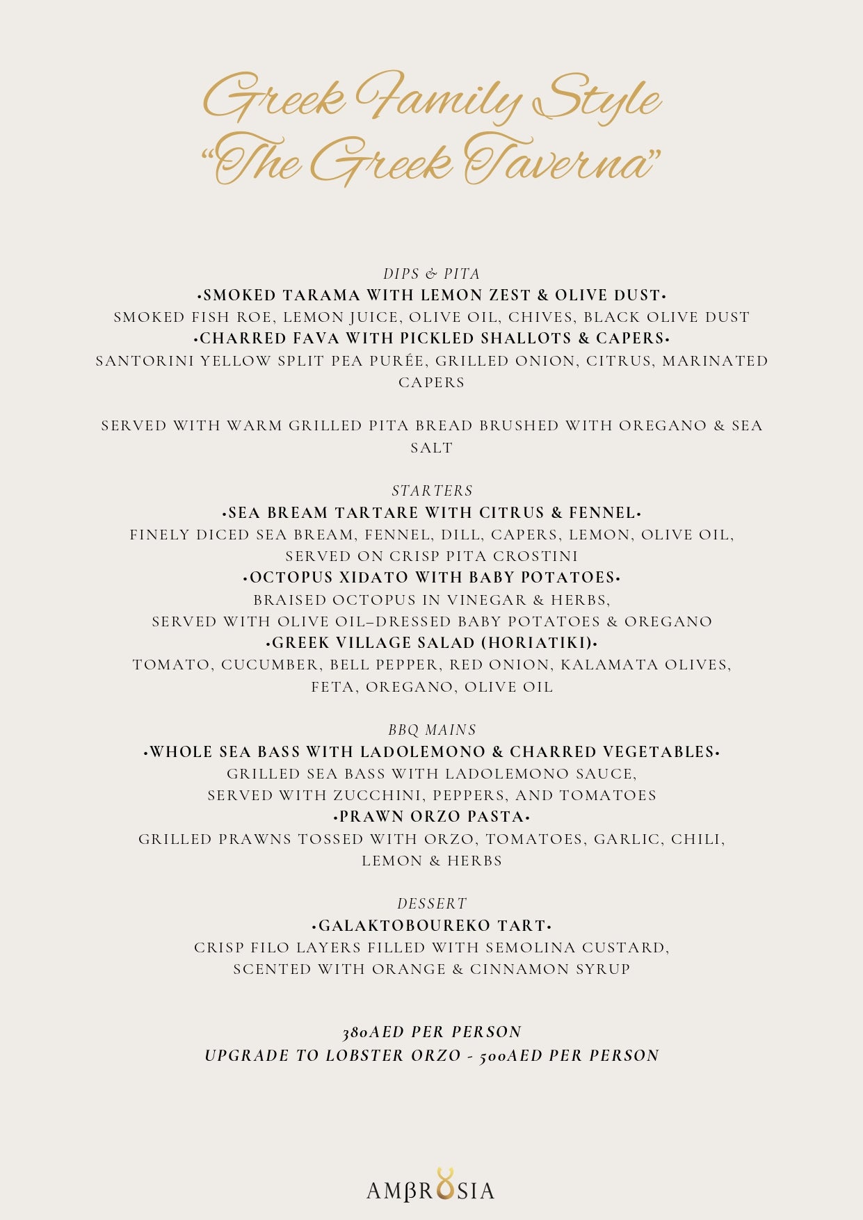 Greek Family Style "The Greek Taverna" by Ambrosia (Lobster Orzo)
